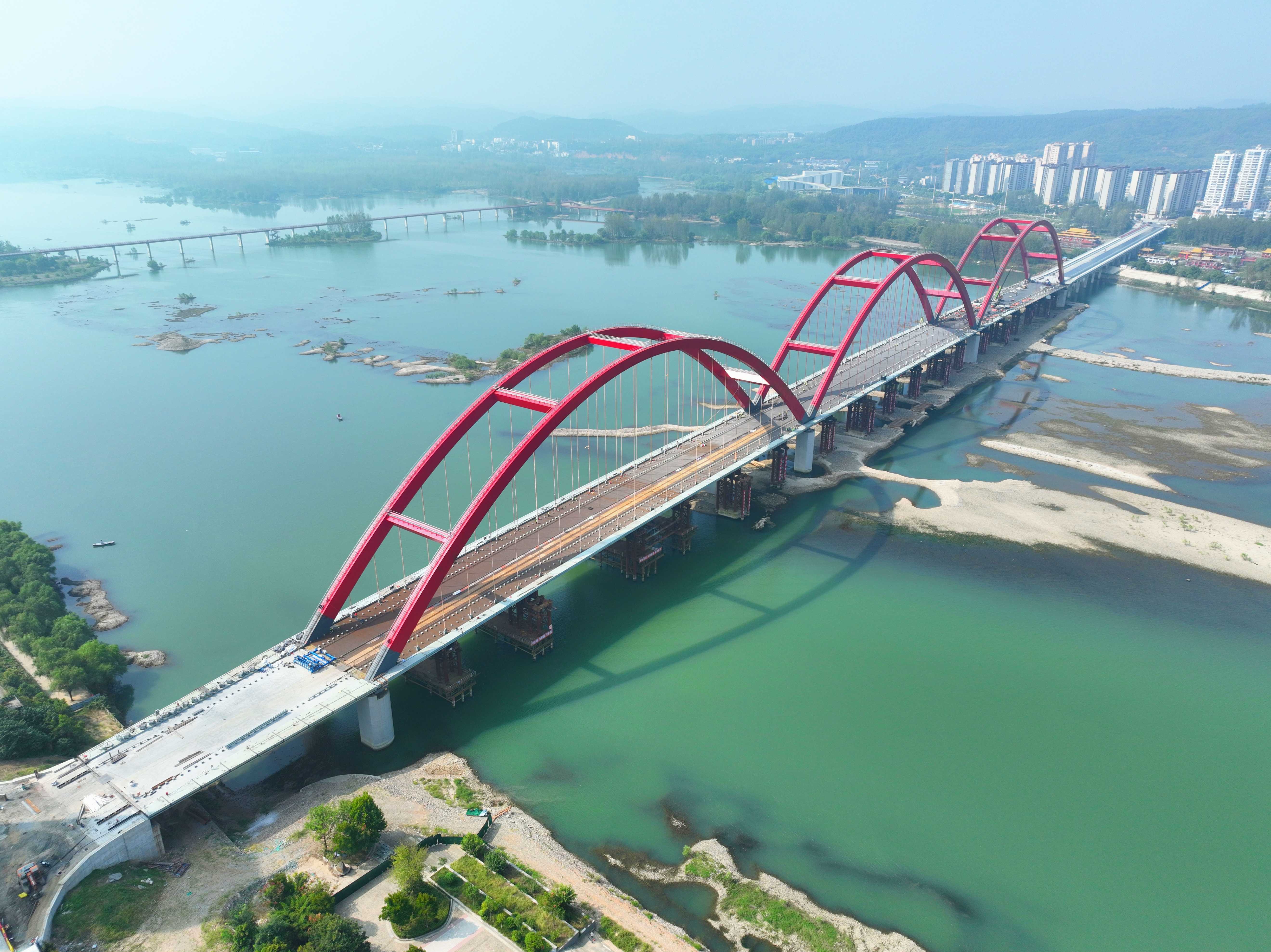 是國內最長的三跨連續鋼箱系桿拱橋。